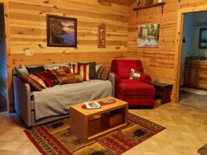Creekside Studio Cabin Snuggle into cozy indoor comfort while savoring the romance of fresh mountain air and the soothing sounds of a trickling stream—whether you